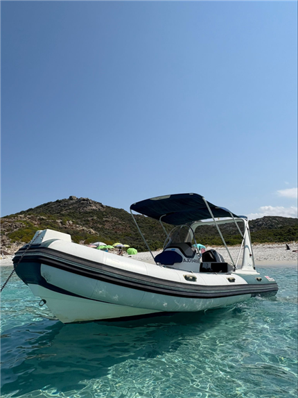 Découvrez l’île autrement à bord ce semi-rigide : Robuste, confortable et polyvalent, il est équipé d’un bain de soleil, d’une échelle de bain et de tout le nécessaire pour naviguer en toute sécurité. Parfait pour partir explorer les criques de Saleccia et Lotu, ou longer les côtes sauvages du Cap Corse.